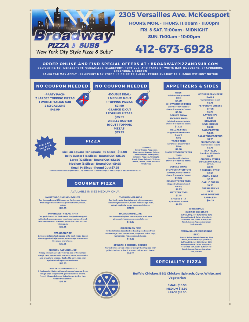 Broadway Pizza - McKeesport Menu